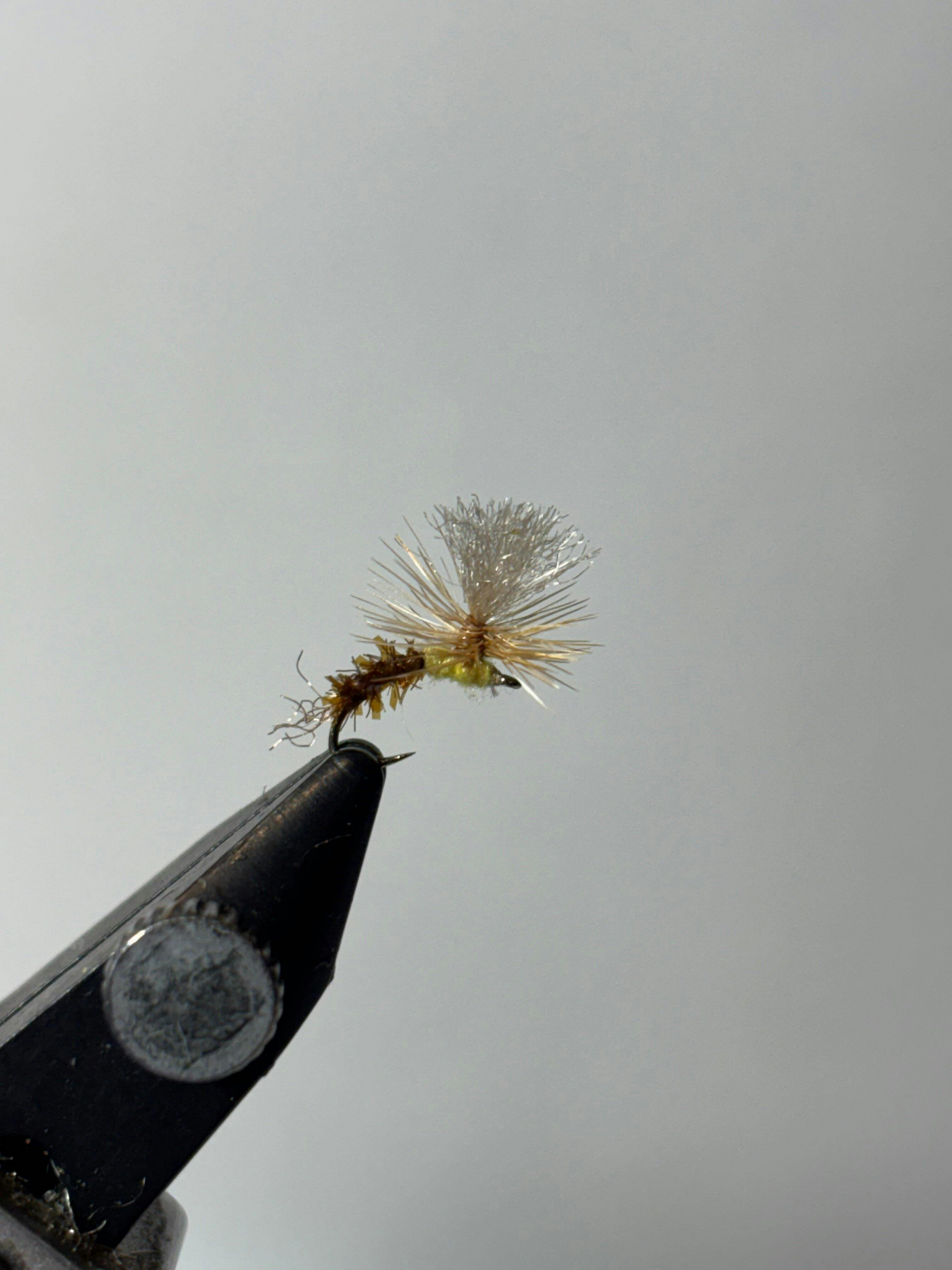 I use the brown color to make the rear half of stuck in shuck emergers and a few wraps of this with its translucency gives a great appearance. Saves a lot of extra time and tying steps over pheasant tail which would need to be reinforced with small wire or mono. Small enough diameter to tie down to size 22. Picture is size 20 daiichi 1160.