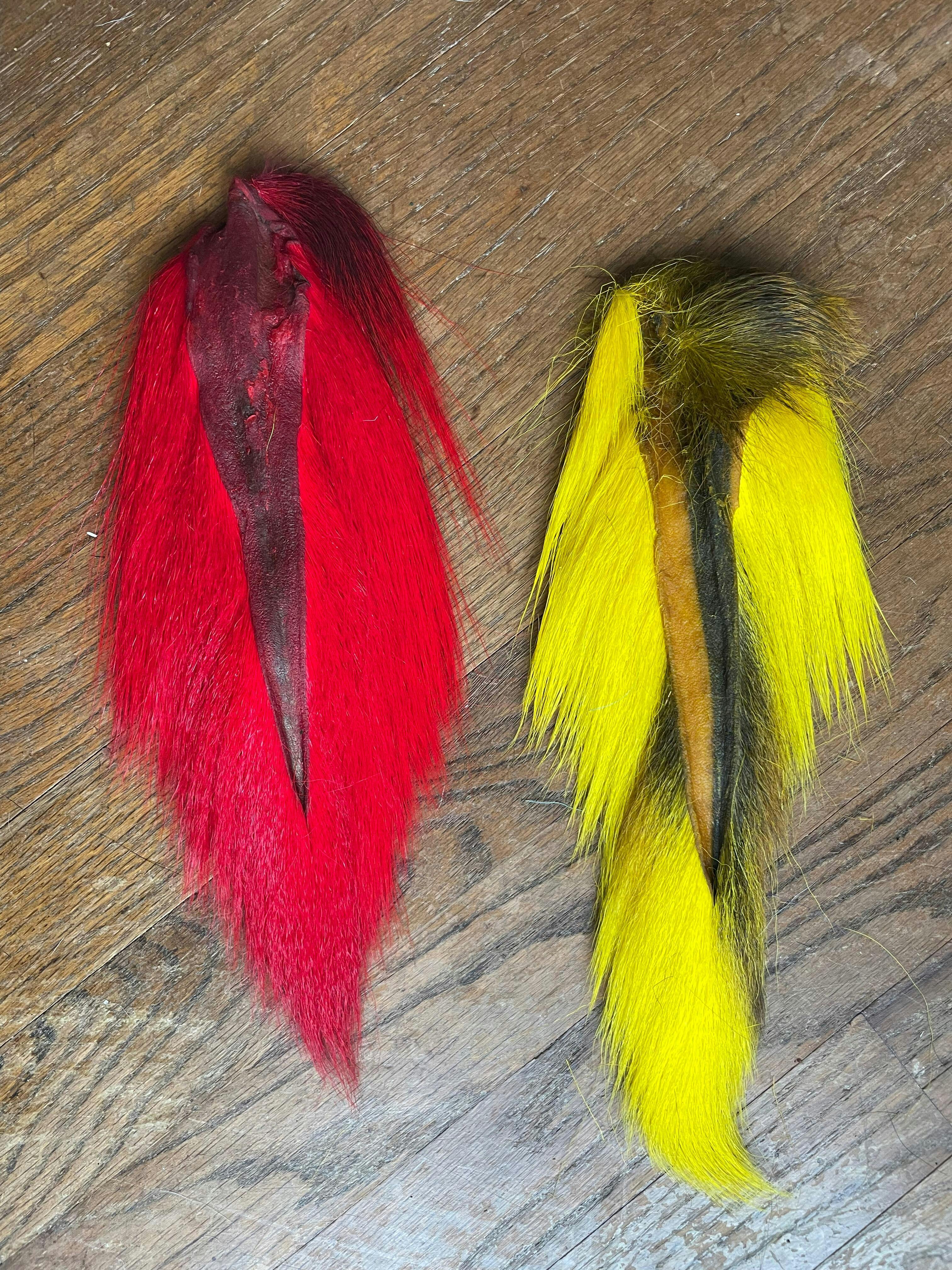 I was very pleasantly surprised by the quality of these bucktails! Lots of long, straight, supple fibers. Better than most of the large northern bucktails I’ve purchased recently. Whoever skinned the yellow one needs their eyes checked, but the hair is still excellent quality.