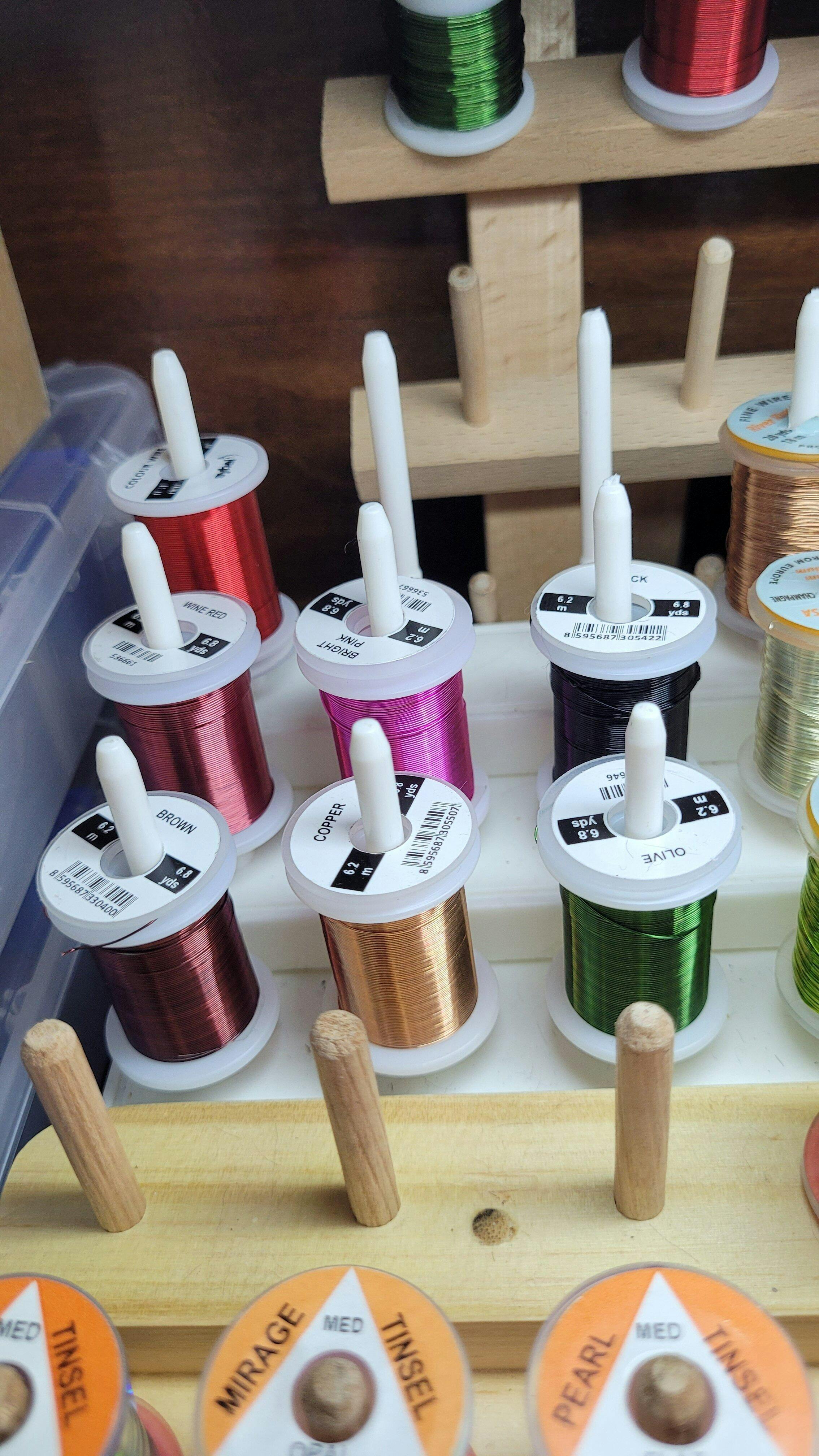 J. Stockard offers this wire not only as another option for fly tying wire, but also because of Sybai’s colors. They cover a wide range and the shades are very cool! We carry 3 sizes, equivalent to UTC's X-Small (0.1mm), Small (0.2mm), and Brassie (0.3mm). Those are the 3 most popular sizes of UTC wire, and all are available in an absolutely awesome color range. This wire will work beautifully for all of your wire needs.